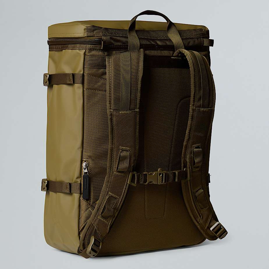• This is the backpack for people who don't wear backpacks. Sure, we borrowed some details from our outdoor heritage to create the Base Camp Fuse Box – it's made from our ultra durable Base Camp Duffel material, it's a top loader and has a chest strap, but it's very much a pack of the streets. Its clean lines and angular shape fit in well in the urban jungle, while a hidden rear-entry smartphone pocket, zipped tablet pocket, internal water bottle holder and padded laptop sleeve make light work of lugging your gear around town.